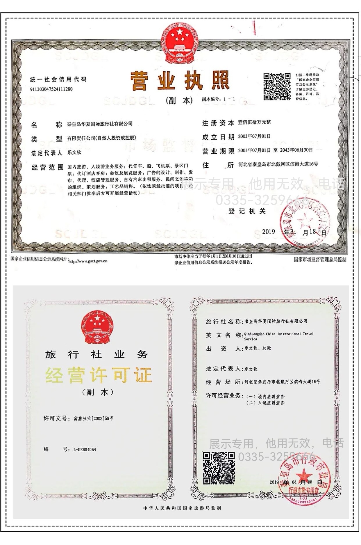 秦皇島華夏國際旅行社誠信、合法經營承諾: